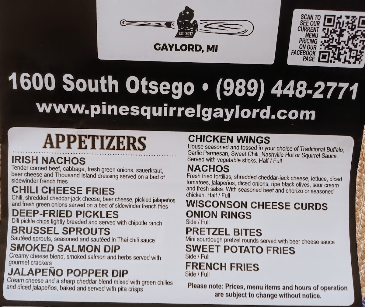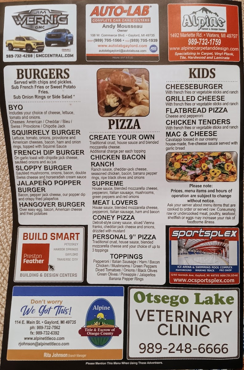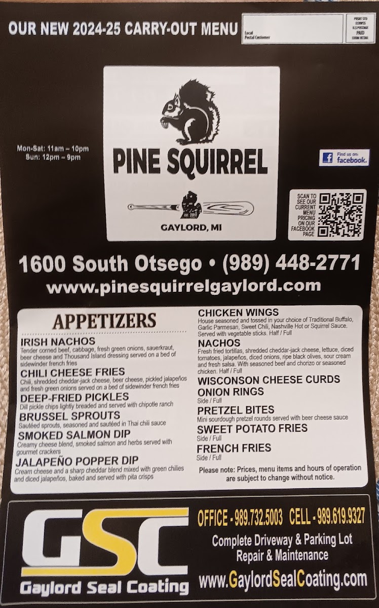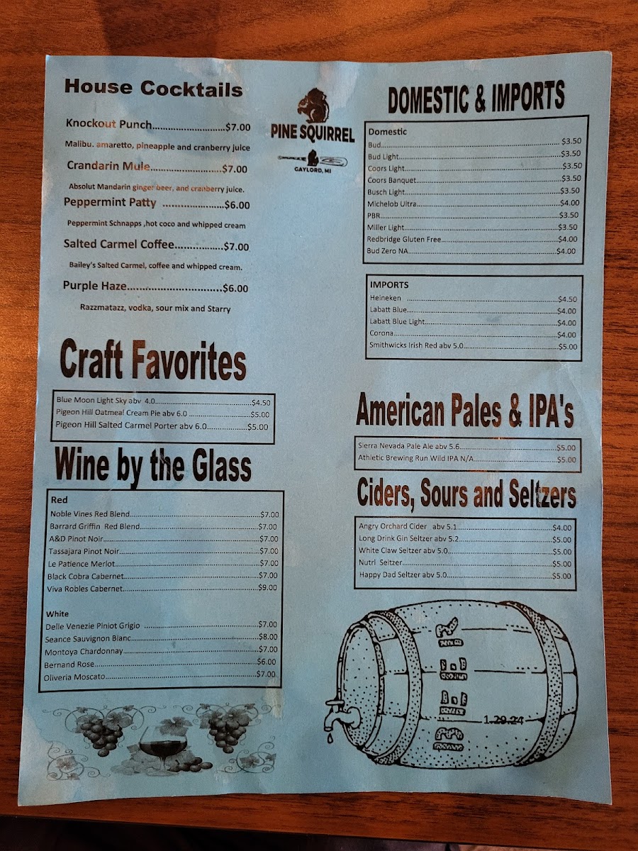 The Pine Squirrel Bar & Grill Menu