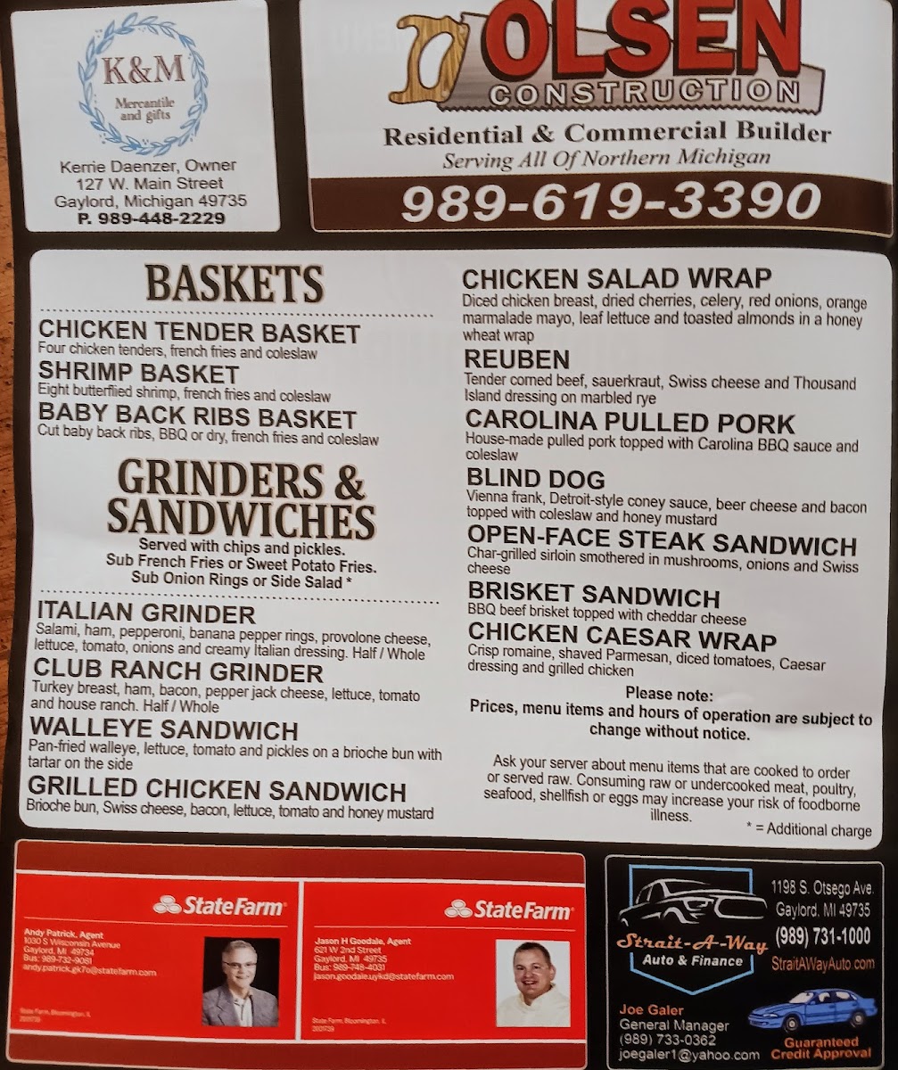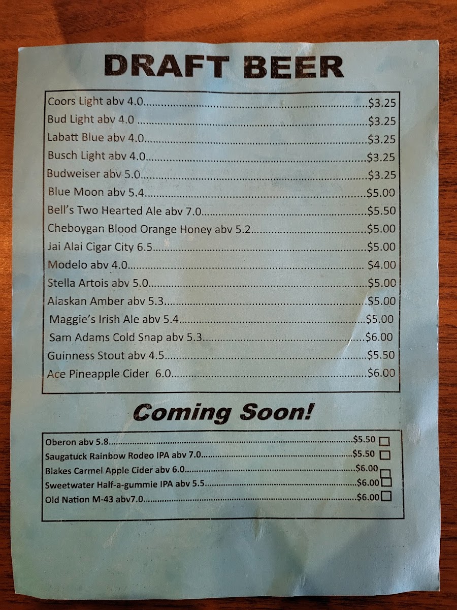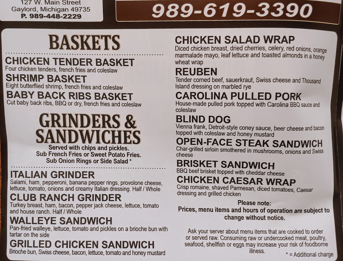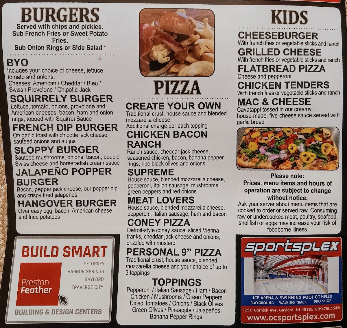 The Pine Squirrel Bar & Grill Menu